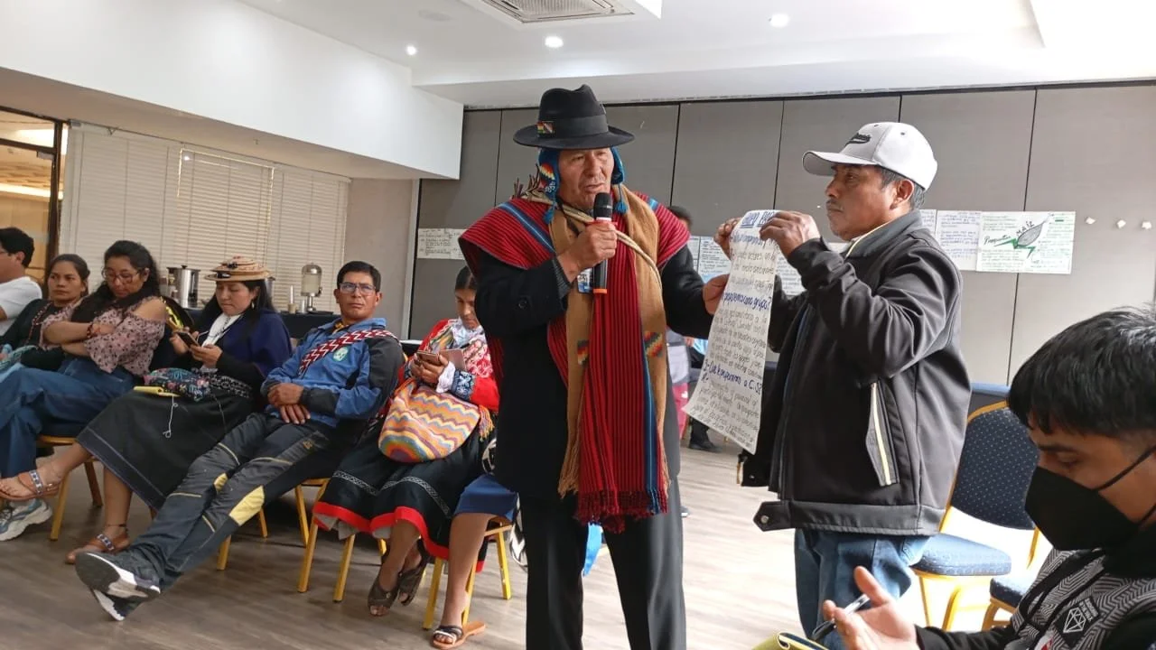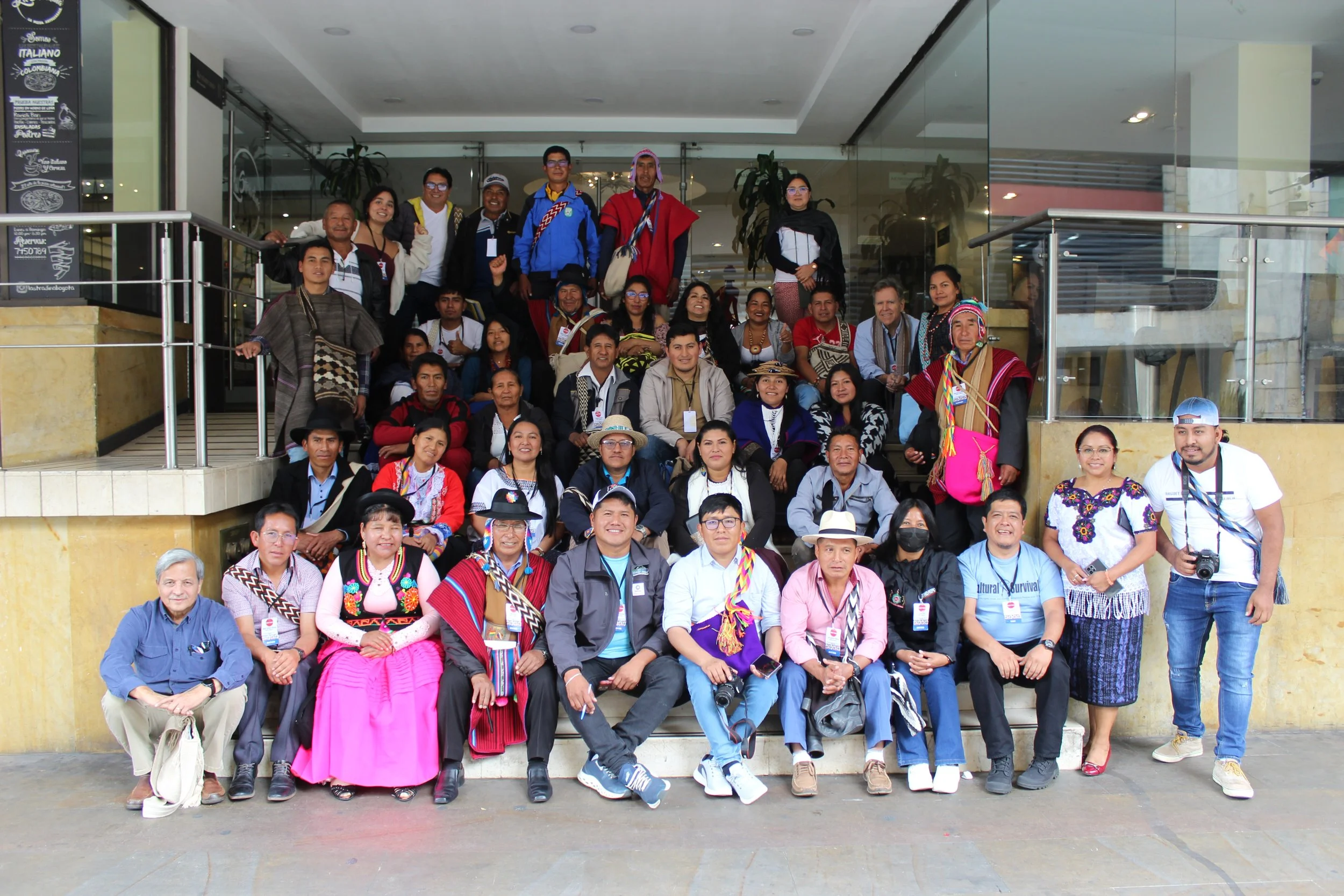 When recounting strategies to combat climate change risks in Indigenous communities across Abya Yala, Benilda Tumiña, a representative of Asociación Jardín Botánico las Delicias de Colombia turned to me and stated, “We have a saying in the Cauca region of Colombia: We will continue fighting as long as the sun does not go out.” These words encapsulated the desires and fruitful discussions that would emerge throughout Cultural Survival and Crescendo International’s “First Convening on Climate Change Impacts and Risks” held in Bogota, Colombia. During the convening, 35 participants, all representing 17 distinct Indigenous alternative radios or land defense organizations from Ecuador, Colombia, Panama, Mexico, Bolivia, Peru, and Guatemala gathered in Bogota for a three-day plenary on strategizing to build climate change mitigation efforts across Abya Yala’s geographies. The importance of frontline communities and alternative radios all under the same roof attended to the most necessary topics for climate change mitigation: Early Warning Systems, Just Transition, Reforestation, among others.